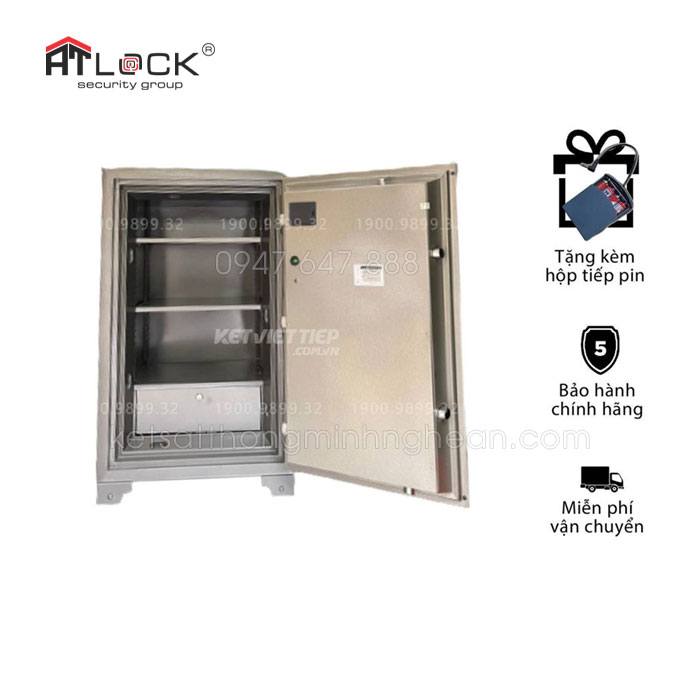 - Chống cháy: Với khối lượng lớn lên tới 240kg, tuy tạo ra sự an toàn khi đối diện với kẻ trộm nhưng nó cũng là phát sinh nỗi lo khi xảy ra sự cố hỏa hoạn. Thấu hiểu vấn đề của người tiêu dùng, nhà sản xuất đã bổ sung tính năng chống cháy, Két sắt được thiết kế với lớp chống cháy chất lượng cao, bảo vệ tài sản an toàn trong các vụ hỏa hoạn thông thường – đạt tiêu chuẩn kiểm định của nhà sản xuất., tạo cơ hội để giải quyết đám cháy mà tài sản vẫn có thể an toàn.